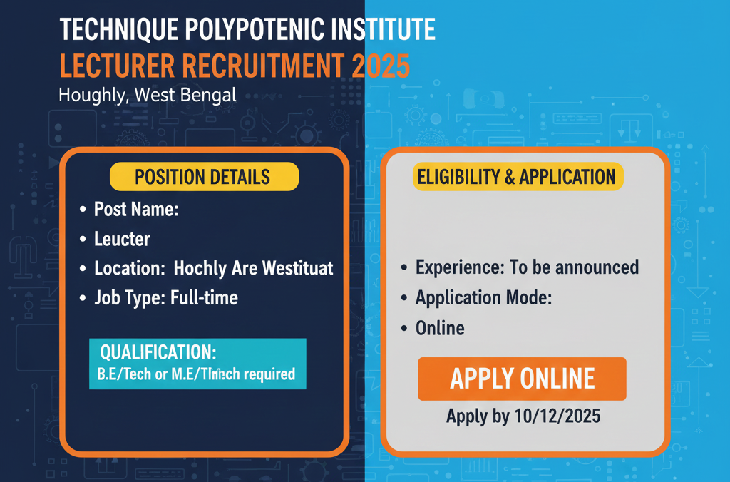 Technique Polytechnic Institute (Hooghly) invites applications for engagement in the post of Lecturer in the following departments. Interested candidates must meet AICTE norms and can send their bio-data in MS-Word format to the provided email.