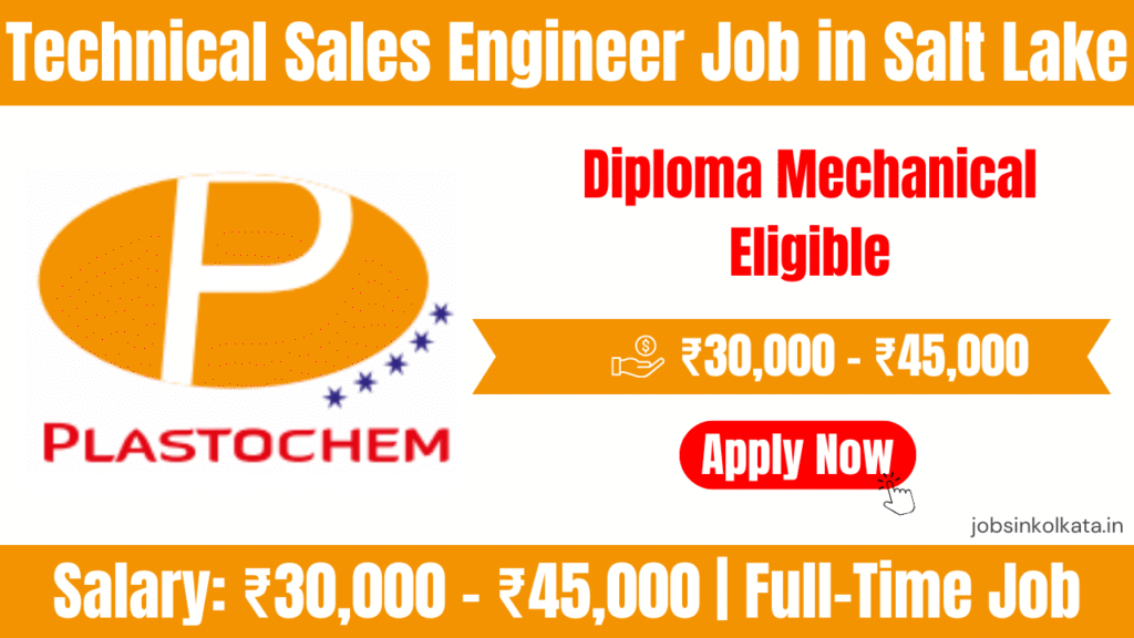 Plastochem India Pvt Ltd is hiring a Technical Sales Engineer in Salt Lake, Kolkata. Full-time role with salary ₹30,000–₹45,000 per month, CTC up to ₹8 LPA, health insurance and PF benefits. Apply now.