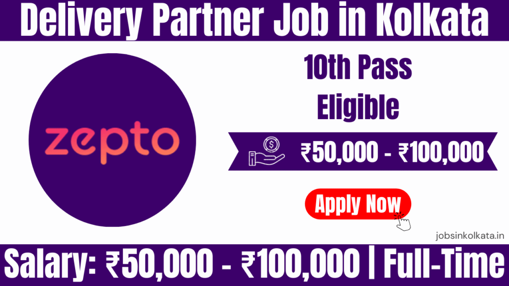 Zepto is hiring Delivery Partners in Kolkata. Earn ₹50,000–₹1,10,000/month with weekly payouts, fuel allowance & bonuses. 10th pass, bike & license required. Part-time & full-time field job. Apply now!